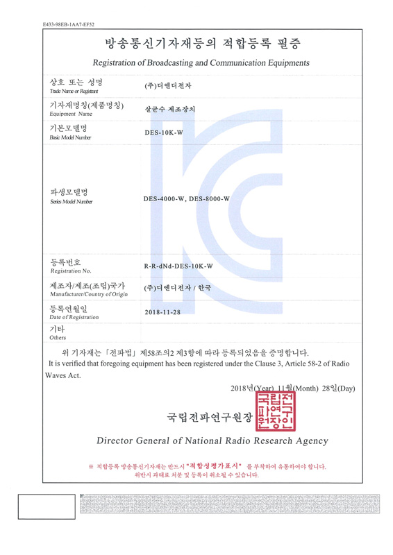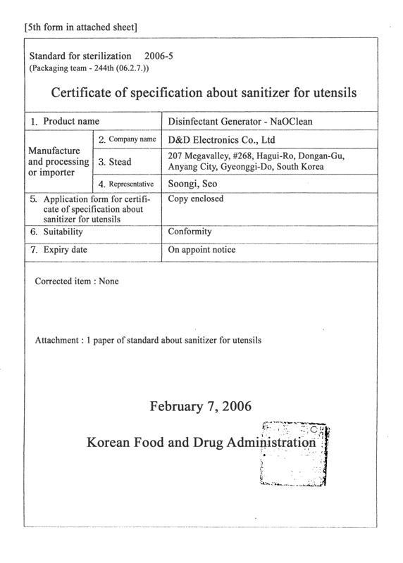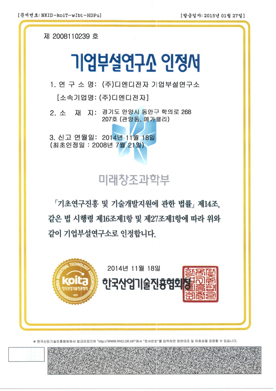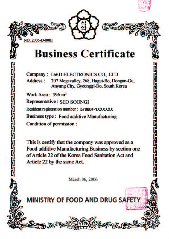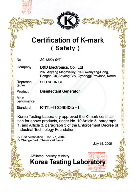 Certificate of K-Mark Safety D&D Electronics