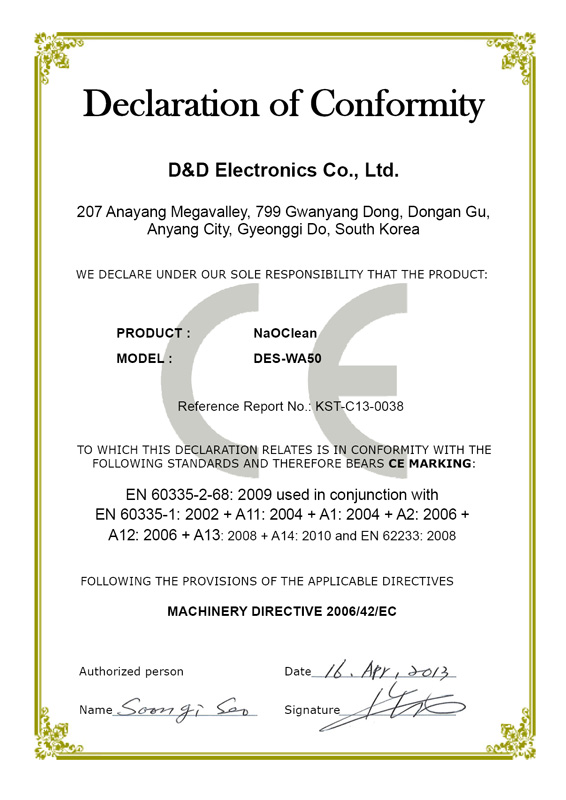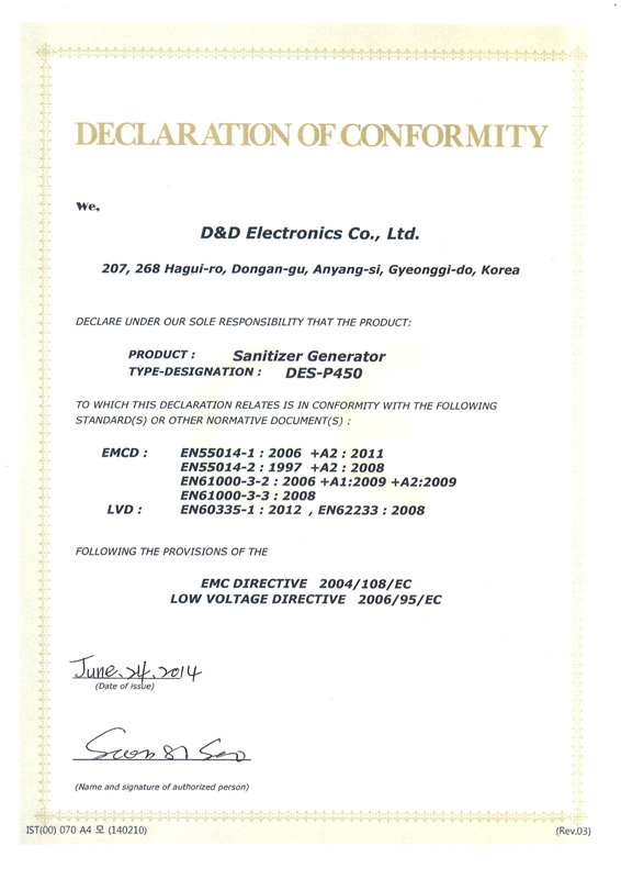Certificate of Environmental Equipment D&D Electronics