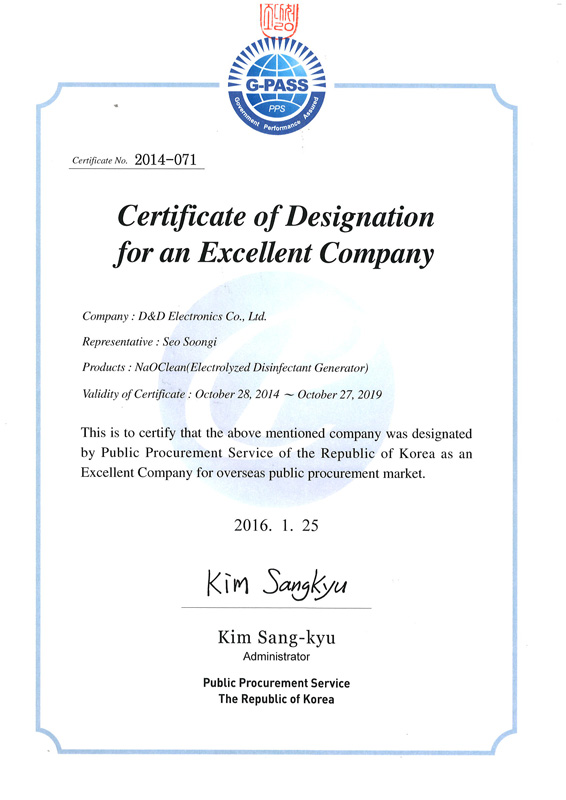 PECA is a partner of D&D Electronics co. ltd, an established disinfectant company in Korea that developed electrolyzed water which small amount of salts (NaOCl) are added to disinfect and eliminate bacteria, virus and harmful microbes within short period of time.