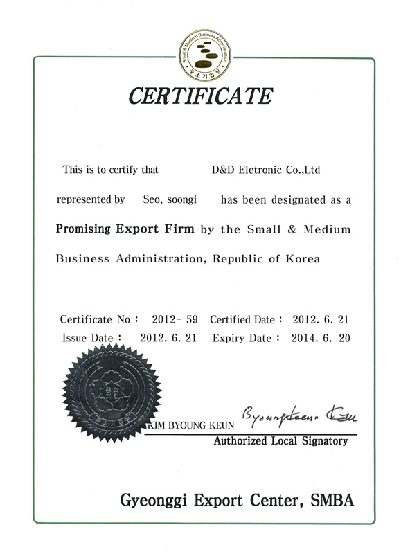 Certificate of K-Mark Performance D&D Electronics