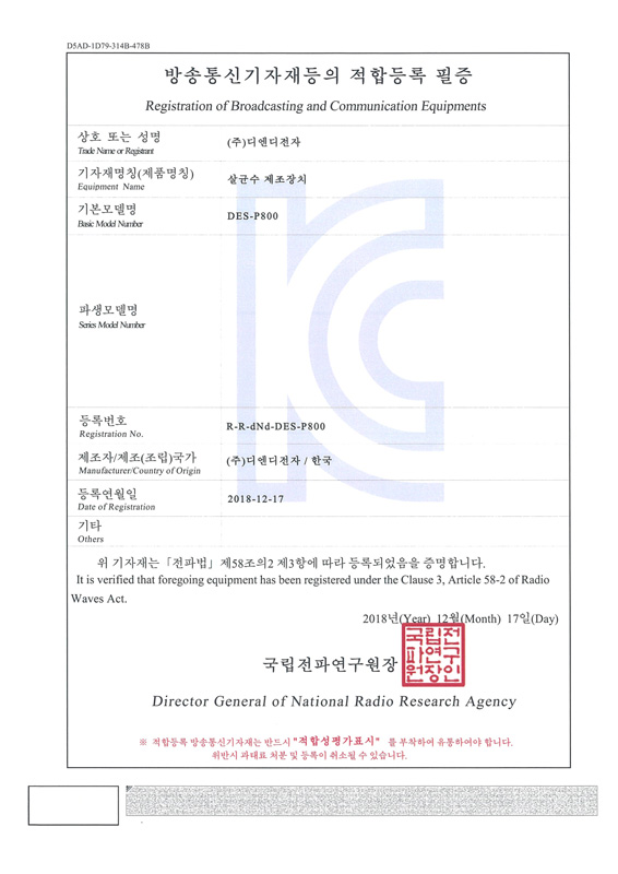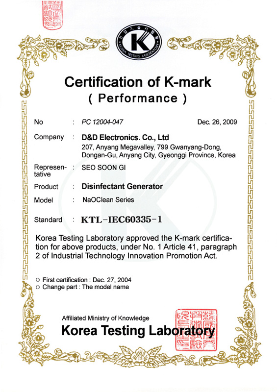 Certificate of K-Mark Safety D&D Electronics
